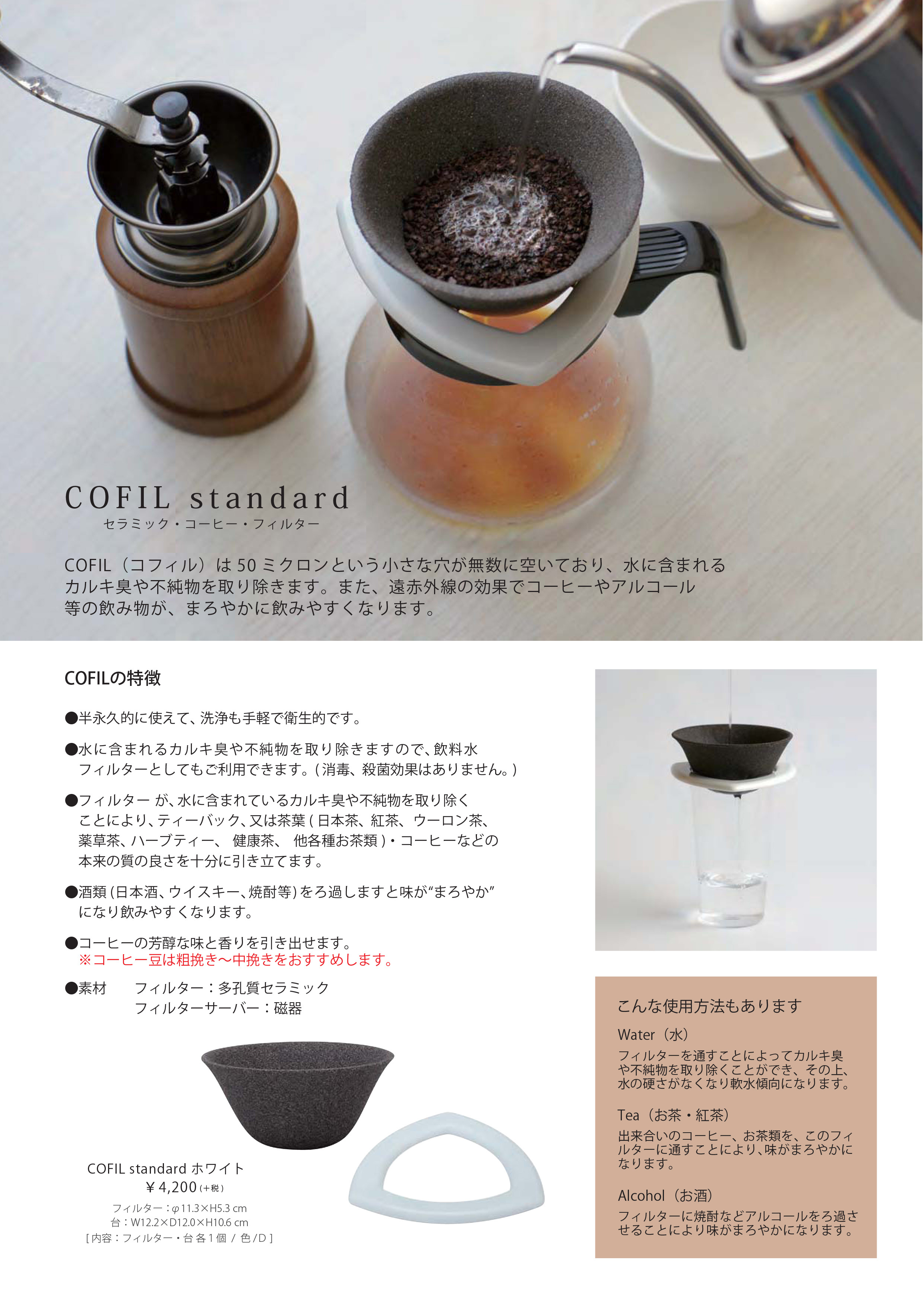 “ COFIL ” 陶瓷咖啡过滤器是有限公司伊万里陶芸的注册商标